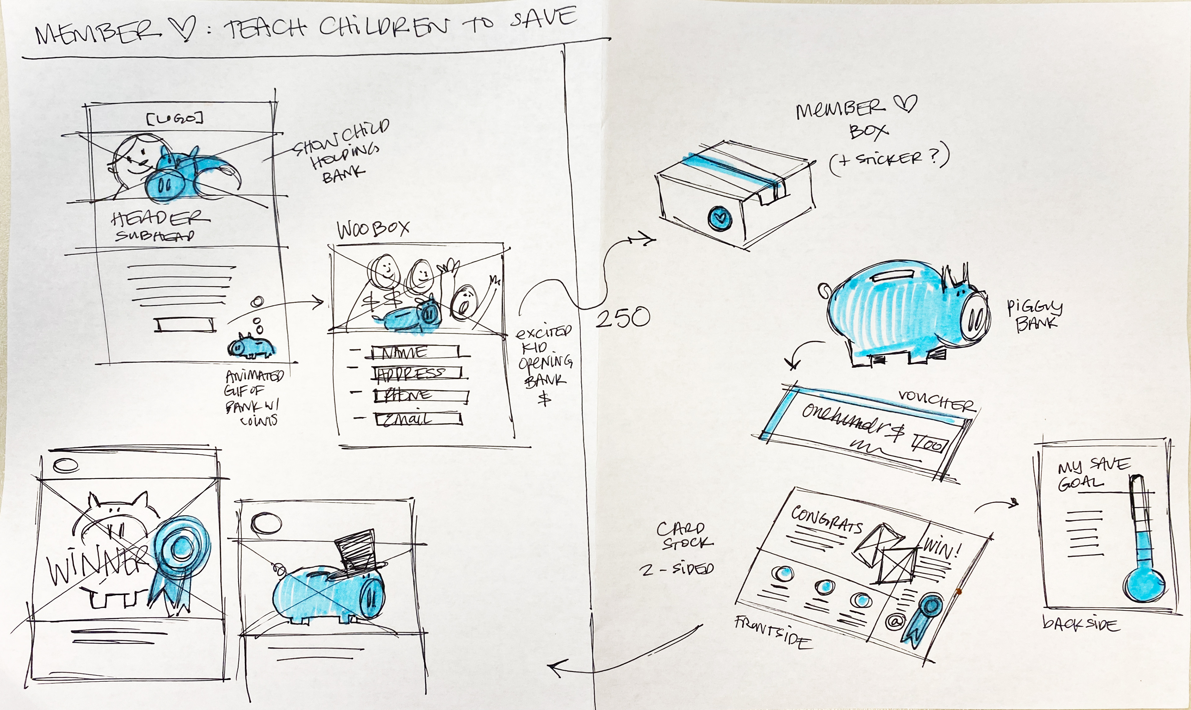 Above: These sketches I drew from the kick-off call. The campaign was centered around National "Teach Children to Save Day."