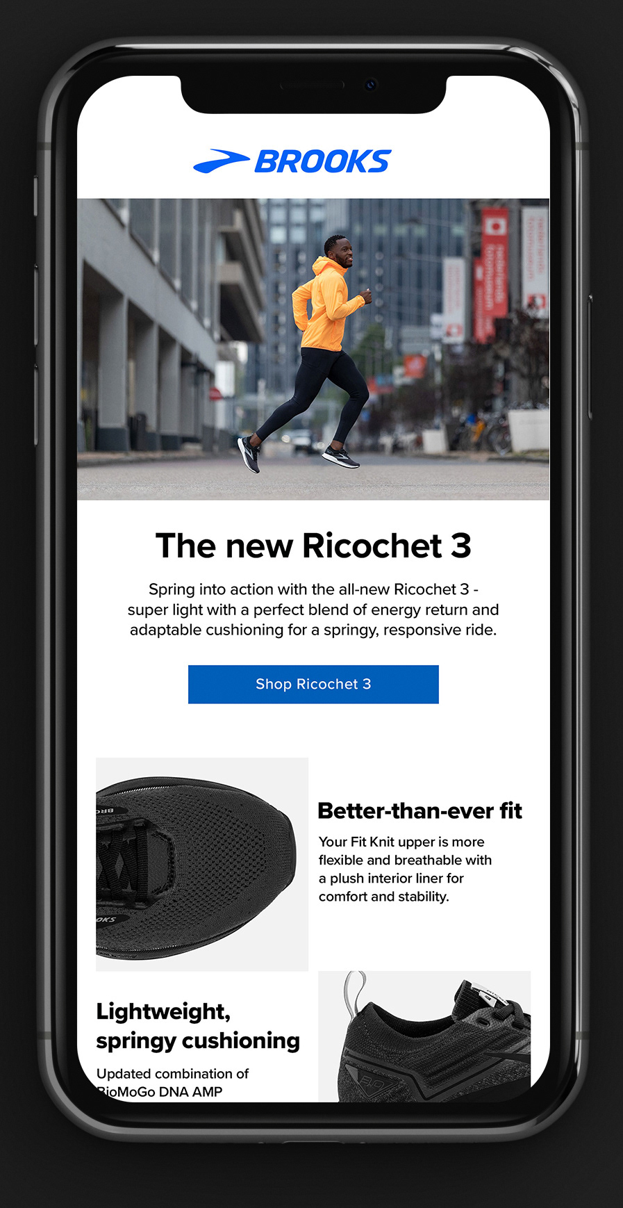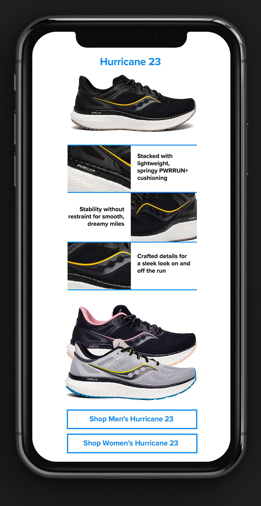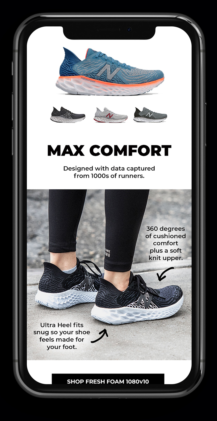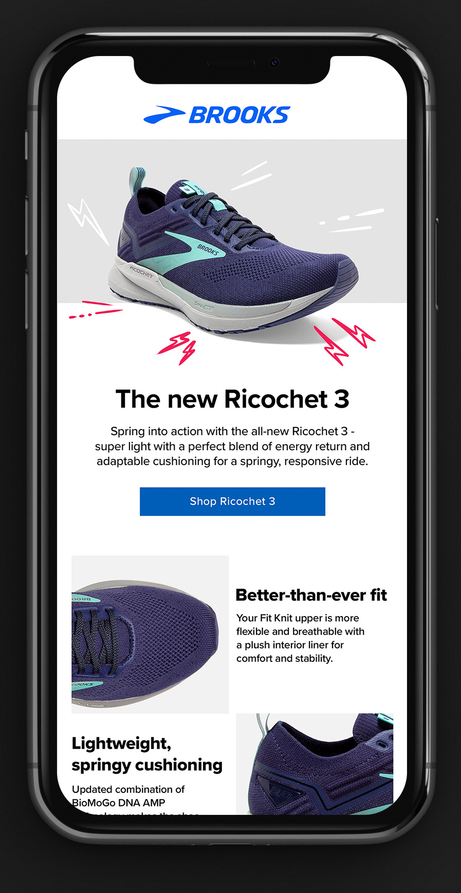 Below: Option 1 mockups featuring illustrated shoes. The CEO requested bright colors and shoes that read as generic and not specific to any one brand. As the concept evolved, the shoes were refined and rebuilt as vector artwork in Adobe Illustrator.
