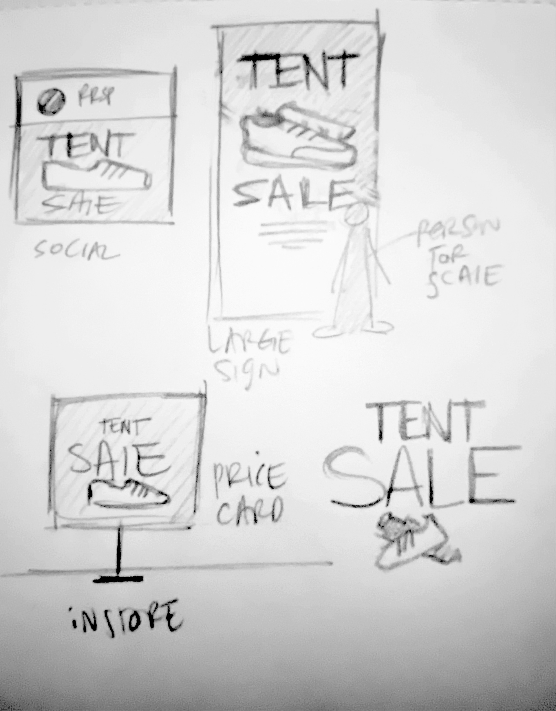 Below: Sketches made during the kick-off meeting to help get the ball rolling. We talked about making images of sneakers the hero for this campaign.