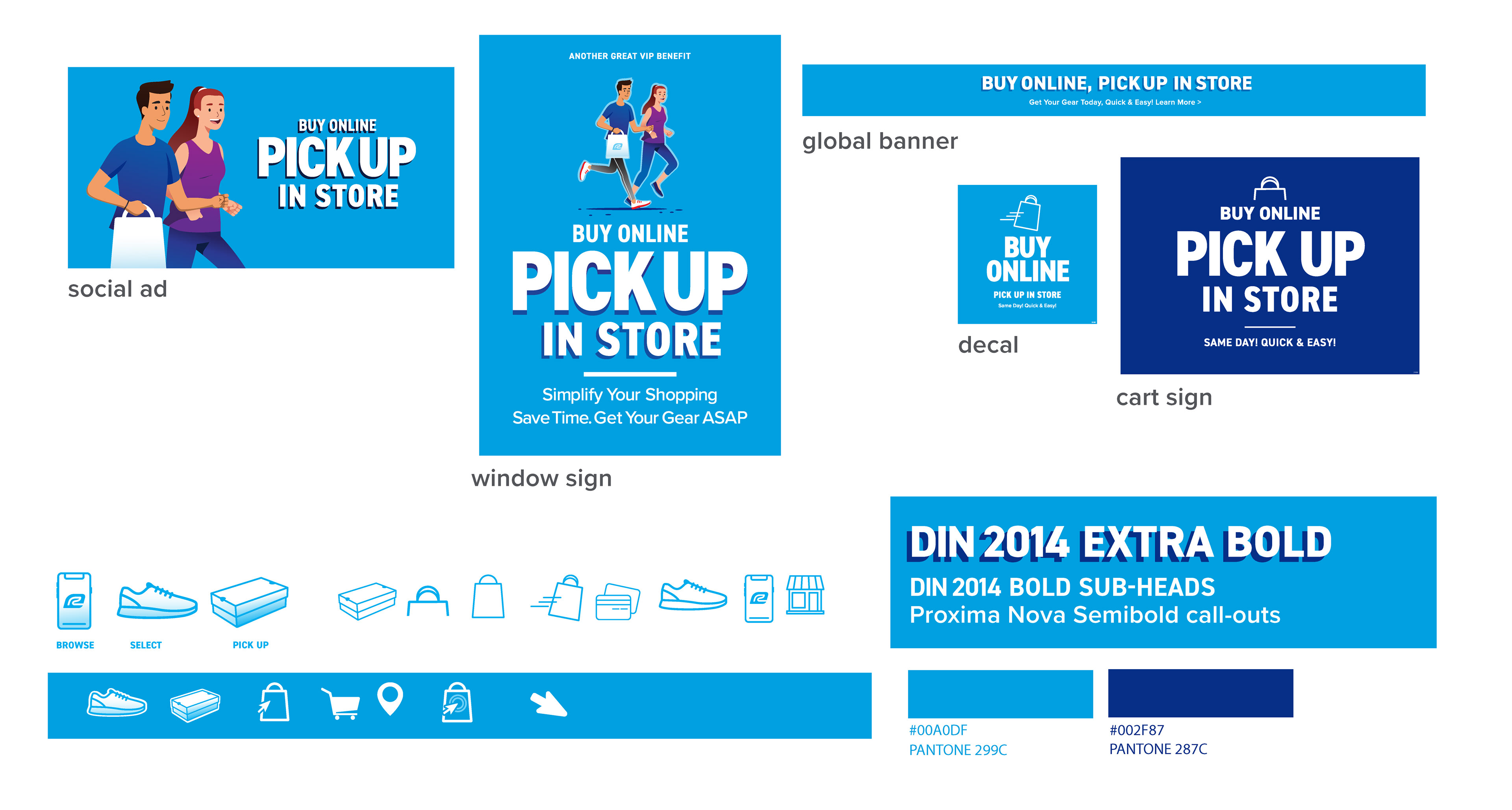 Below: A campaign for in-store pick-up using stock illustrations. This campaign had to be concepted, approved and launched in under 3 weeks. I leveraged the store's primary brand color, blue.